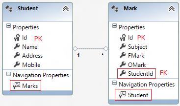 You will also notice a checkbox in the above image. The main characteristic of the Foreign key association is a foreign key property exposed on a dependent entity. The foreign key property must be always exposed when you wish not to accept any entry who's "StudentId" is not available in the "Student" entity.
