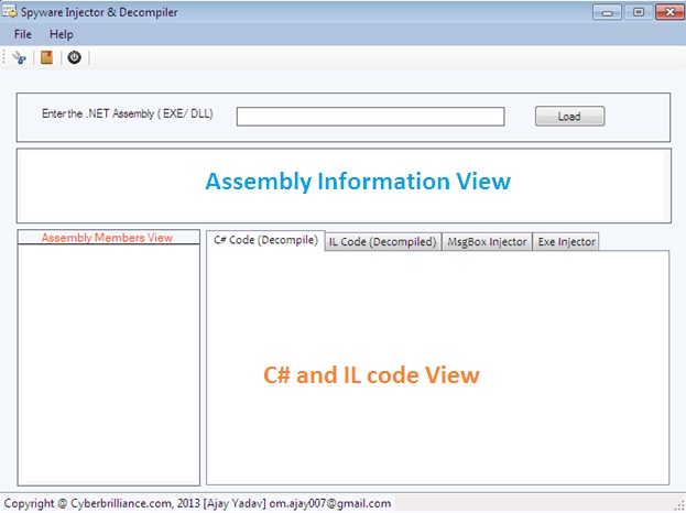 The custom disassembler cum injector provides a user-friendly, easy-to-operate end-user design that is even manipulated by laymen. Though such an undertaking can be exposed in a command-line view too, they are relatively cumbersome and pose fewer features. As per this software internal functionality, it typically first asks to upload a .NET built assembly that could be a .dll, .exe, or anything else. Later, it displays the aspects of assembly origin in a comprehensive manner as well as showing entire members such as namespaces, methods, and property-related specifications of the assembly in the TreeView control. The moment we select or expand any member of the assembly we get the decompiled view of the business logic in both C# code and MSIL code in a separate tab consequently. Finally, the most significant features such as Message Box and Spyware/Malware injection could be encountered on behalf of a selection of members from the tree view control. We will craft the following design to de-compile the assembly and inject malware as in the following: