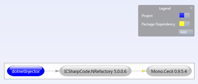 The NuGet add-in creates dependency charts of the packages that are installed in the current package in order to set up a correlation.
