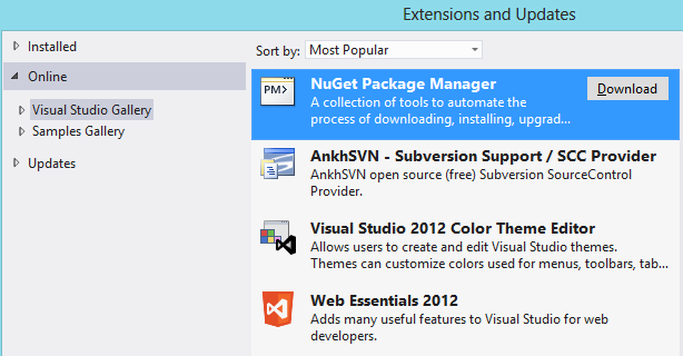 Note: It is necessary to be have an internet connection when manipulating a NuGet Package.