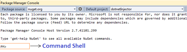 You can install, remove, update, and list any packages using PowerShell command-line commands or using the Manage NuGet Packages dialog box in the Package Manager Console dedicated Visual Studio window. Both options are accessible from the Visual Studio main menu. The following figure shows the PowerShell view of the package manager where we can manipulate it using built-in commands like a command prompt to install, list or delete package as in the following: