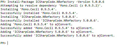 PM> Install-Package ICSharpCode.NRefactory -Version 5.0.0.6
