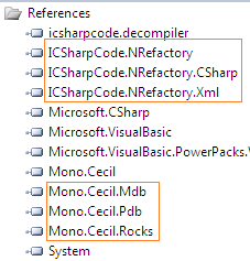 Now, right-click to dotnetInjecter | References and choose to Add Reference, here import some external DLL file references to consuming their special classes as in the following: