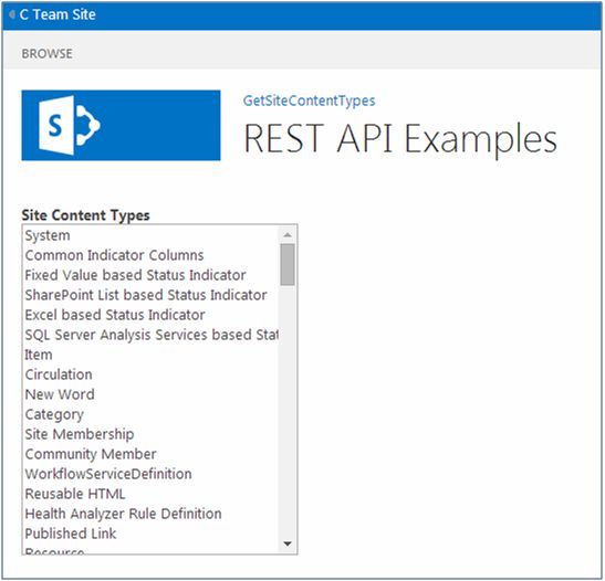 This article shows how to get all the site content types using the REST API in SharePoint 2013 Online.
