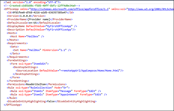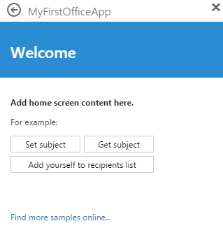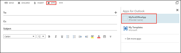 - Click on the “MyFirstOfficeApp” app. The HTML is rendered as shown below.