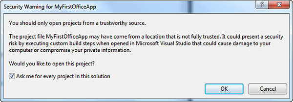 - Select “App for Office” from the installed templates, enter a name for the app and then click on the Ok button.