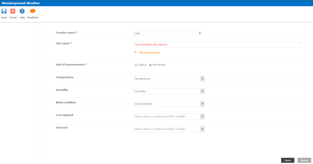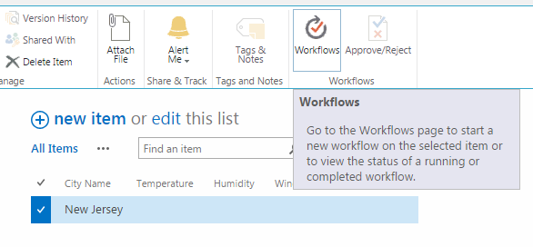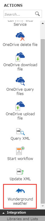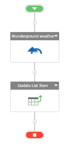 Wunderground Weather is a new action introduced in NINTEX workflow for SharePoint 2013 that can be added from the NINTEX store. Using this action you will be able to get the weather for a specific city. To explain this action I have created a custom list with the following columns:Workflow DesignCreate Weather Workflow