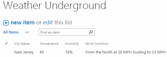 SummaryThus in this article you have seen how to get the weather from Weather Underground using a NINTEX workflow in SharePoint 2013 Online.