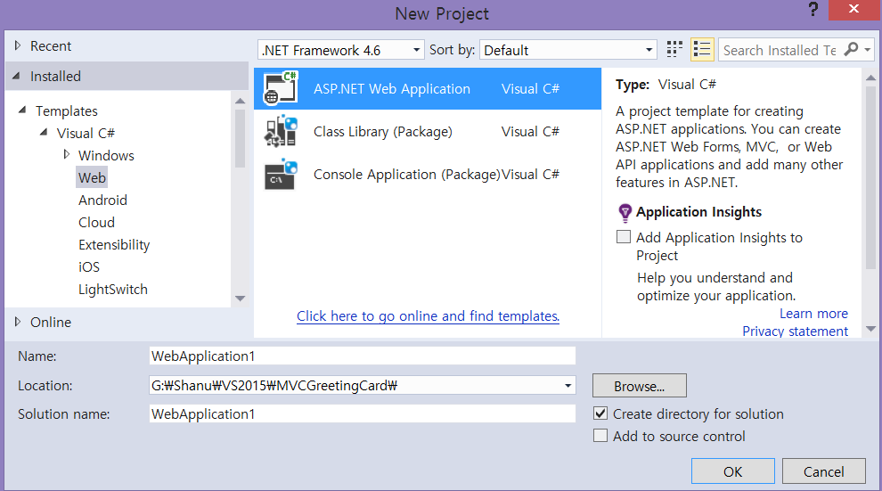 After installing our Visual Studio 2015 click Start, then Programs and select Visual Studio 2015 - Click Visual Studio 2015. Click New, then Project, select Web and select ASP.NET Web Application. Enter your Project Name and click OK.