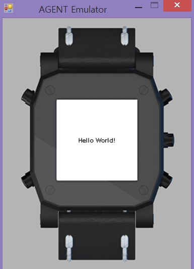 Without writing any code we can run our first AGENT Smartwatch application to display the “Hello World” text display.