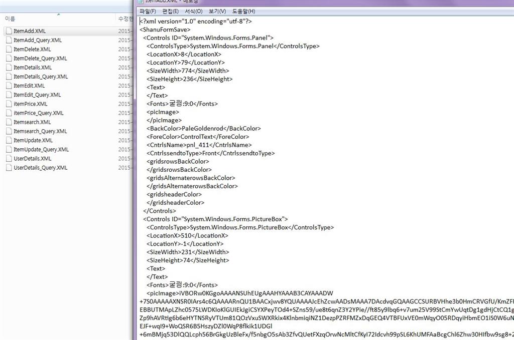 In the “XMLForms” folder, for each form you can see 2 XML files. One XML file will be used to store the form control details with all the properties and the other XML file will store each form's Stored Procedure names with parameter details.