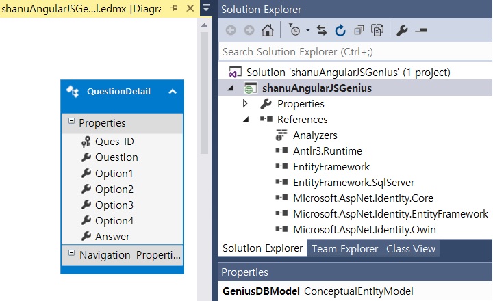 We will create a QuestionDetails table under the Database ‘GeniusDB.