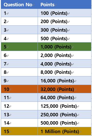In each 5th question the player will reach the Safe Zone. Here in points we can see in each 5th question I have marked different color. Now for example let’s consider a player is playing this game and he/she answered 5 questions correctly and in 6th question if he picks the wrong answer then he will be getting total 1000 Points. If the player plays a game and he/she answers 3 questions correctly and for the 4th question if he picks the wrong answer then he will get 0 points no matter he answered 3 questions correctly. The player has to pick the correct answer. If he/she picks the wrong answer then he will be getting his last safe zone points. For example, a player answers 12 questions correctly and in 13th question if he picks the wrong answer then he will be getting 32,000 instead of 125,000 Points of 12th question. If the player answers all the 15 questions correctly then he’s the winner and will be a genius.