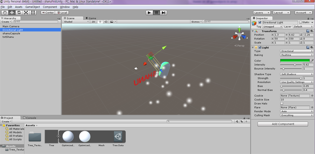 Now in the property window, we can see I have selected the Green color for the Directional Light Object and I have increased the Identity of the Light Object from the property window.