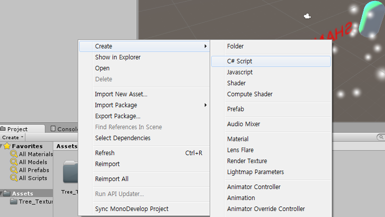 We can see our entire project file in this window. We can add a C# Script file from this window.