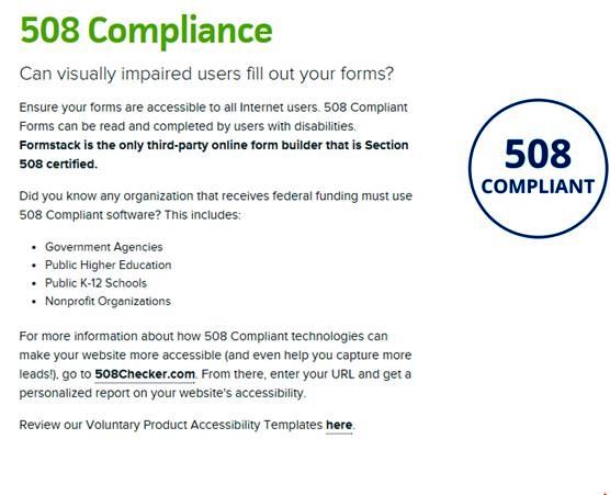 Figure 2: Formstack is a form builder that is 508 section certified