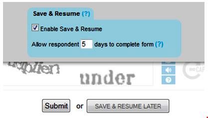Figure 4: SAVE & RESUME LATER feature of Online Form Builder EmailMeForm