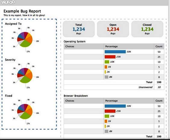 Figure 5: Online Form Builder WuFoo reports using Graphs, Text, Numbers, Charts and so on.