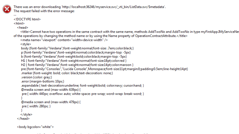 Error says: cannot have two operations in the same contract with the same name. You can change the name of an operation by changing the method name or using the name property of OperationContractAttribute.