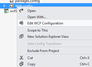 Right-click on web.config that is located in the mvcClient project and click on the "Edit WCF Configuration" option.