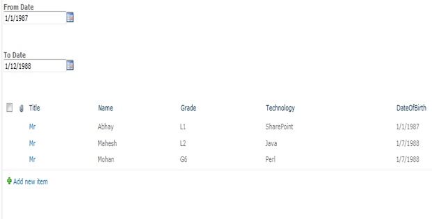 Step 2: Add two date filter Web Parts, one for the "from" date and the other for the "to" date on the page as below.