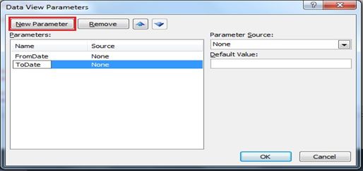 Step 5: Add two parameters, “FromDate” and “Todate”. Don’t make any change in the Parameter Source and Default Value control.