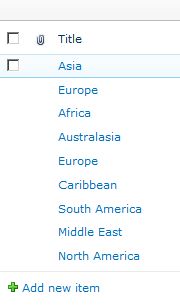 In the Region List add Regions of the world as in the following: