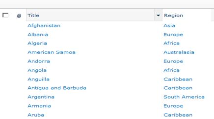 In the Country List add Region as lookup and add countries corresponding to Regions.