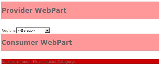 Step 16 : Select region from the provider webpart and you will find the result in the consumer webpart as below.