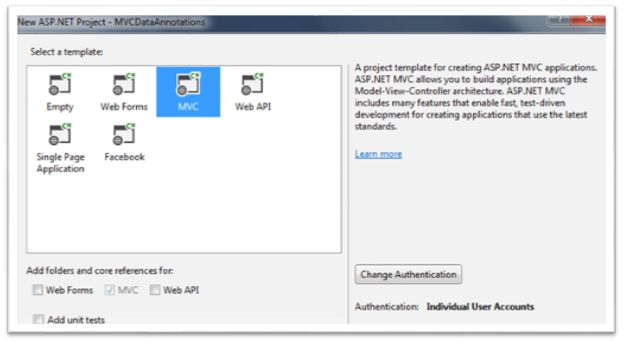 Data validation is very important for developing any web application. In ASP.NET MVC, we can easily apply validation to a web application by using the Data Annotation attribute classes to the model class. Data Annotation attribute classes are present in the System.ComponentModel.DataAnnotations namespace and are available to ASP.NET projects like ASP.NET web application and website, ASP.NET MVC, Web forms and also to Entity Framework models.