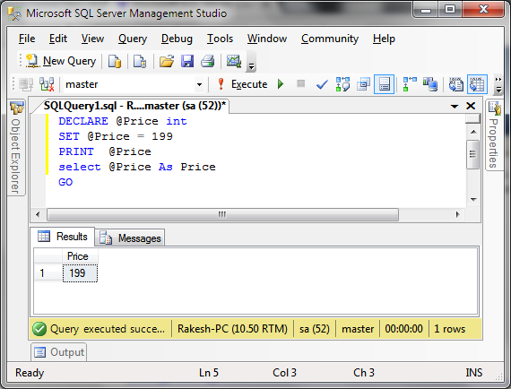 In this use must @ mark initialize for any variable and also use the SELECT or SET keyword.