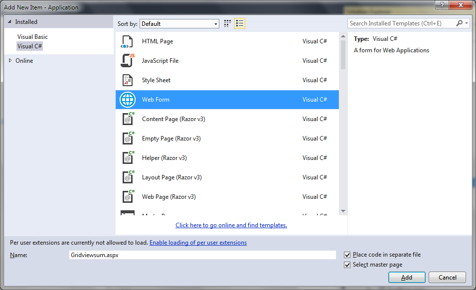 Figure 2: Add FormStep 3: UI DesignIn this Design section add a GridView control to display the database table data on a web page.UI Design