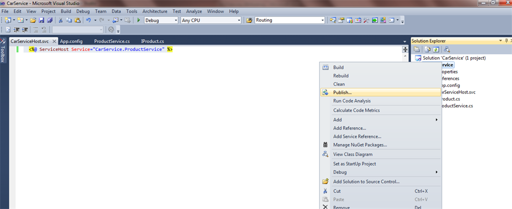 Now add the SVC file to the project so that we can use this file later to publish on IIS.