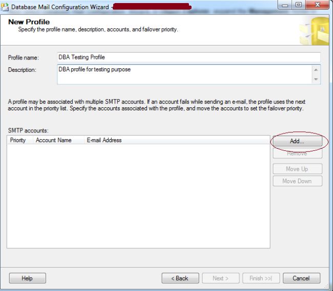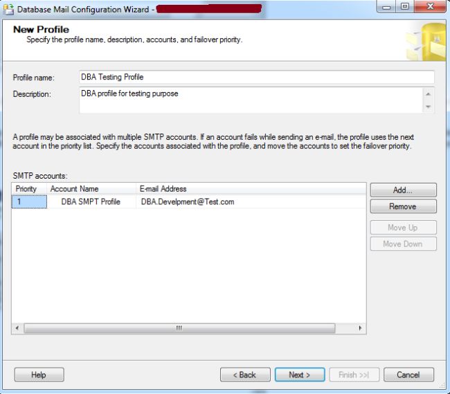First you will create Database Mail accounts for the profile using the msdb.dbo.sysmail_add_account_sp Stored Procedure and then you will create an account profile using the msdb.dbo.sysmail_add_profile_sp Stored Procedure then execute this Stored Procedure msdb.dbo.sysmail_add_profileaccount_sp to add the account to the profile.