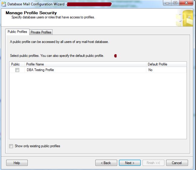 A database user or role must be granted permission to use a Database Mail profile if that profile is private. Since Database Mail enforces security for mail profiles, you must explicitly grant permissions to each MSDB database user or role that should have access to a private Database Mail profile. You can grant access to either specific users or to all users in MSDB. A private profile restricts access to a specified list of users or roles of the mail-host database (MSDB). A public profile, on the other hand, allows any user or role with access to the mail host database (MSDB) to send e-mail using that profile. The Database Mail profile used in this guide is a private profile and will therefore require permissions to be granted to a user or role before it can be used to send e-mail.
