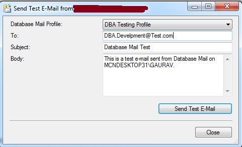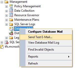 Make a test of the new e-mail Profile within SQL Server Management Studio. Right-click Database Mail and select Send Test E-Mail.