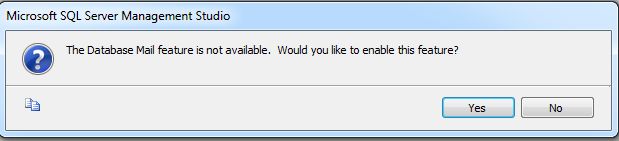 If you haven't previously enabled Database Mail then you will obtain a message box asking if you wish to enable the Database Mail feature. Click yes to enable it.