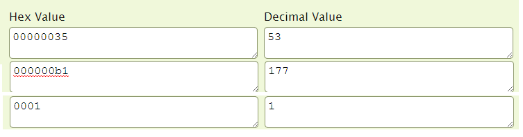 - SELECT CAST (CONVERT (VARBINARY,'0x'+'00000035', 1) AS INT) as A,