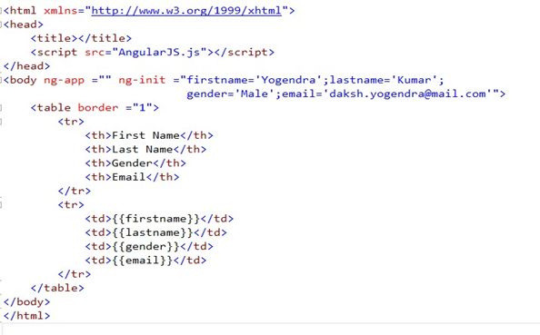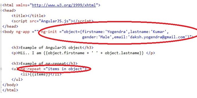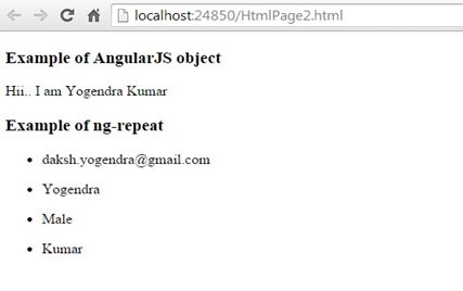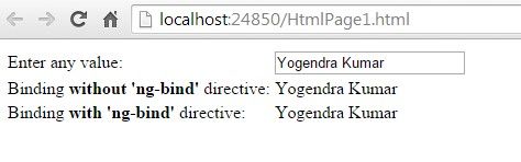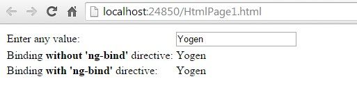 In the continuity of AngularJS application, we will talk about some more directives and their usage in this article. In my previous article we discussed some of the very basics of AngularJS. We will move ahead step-by-step.ng-bind: ng-bind is actually used to bind data to HTML in the very same way as we saw in the previous article by {{ }} (double curly braces). Let's use an example.In the preceding snapshots we can see how the binding works, so we can use anyone binding to bind the data. Now move ahead and let's see the ng-init directive.ng-init: ng-init directive is the initialization directive, its main purpose you will learn when we will talk about controllers in detail. Here I am giving an example that shows what and how it works.In the above snapshots we did use ng-init, here we used some static information with it.Now one more directive we will use is ng-repeat and we will also see the various types of initialization of the ng-init directive with AngularJS objects (in other words thereby we initialize some values in an object and access those values by that object).As in the preceding snapshots we can see the highlighted area, where we used ng-init with an object and ng-repeat directive. Which is repeating all the values that is contained by the object.But notice the order in which they were added to the object and the order they are displayed on the screen. Note it is different. Why is it and how we can sort it out, we will talk about it in our next article. Where we will discuss some more directives, arrays and some events.Thanks and suggestions are heartily welcome.