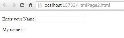 As we will type name in textbox, that text will be shown in paragraph {{name}} expression.
