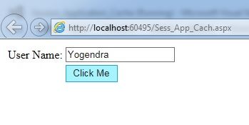 See, now the Session, Application and cache contain the same value, “Yogendra”. Why? Because the session contains user information and the Application and Cache contain the value for the complete web application.