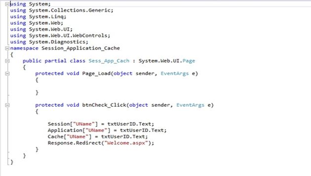 So Session and Application are server-side techniques and Cache works on the client side as well as the server side, in other words thereby all these three stores the information on the server (since browsers are stateless) and these are widely used in ASP.Net applications. The question now arises of when and where do we need to use all these. So before using them we should know what the uses of these techniques are. Let's start with sessions.