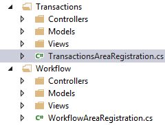 Let's say you have two areas transactions and a workflow as shown below and each has its own registration cs file.