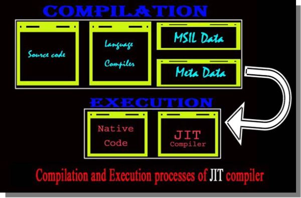 Refers to the process of converting the IL code into Native Code (machine code) by the Just-In-Time (JIT) compiler, the process of compiling and execution is done and repeated by the JIT compiler. After compiling, the code is passed through a verification process that examines the IL code and metadata to check whether the code is type safe or not. The code should be able to access only those memory allocations that it it is authorized to access. The following diagrams depict the complete process.
