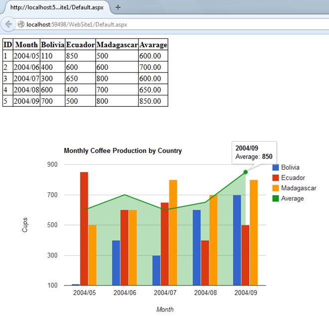 - strScript.Append("var options = { title : 'Monthly Coffee Production by Country', vAxis: {title: 'Cups'}, hAxis: {title: 'Month'}, seriesType: 'bars', series: {3: {type: 'area'}} };");