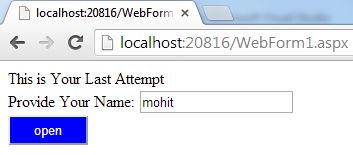 Here in the TextBox I will provide one name and click on the button. I will first provide a valid user name and you will see that I am getting greetings in the output.