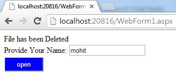 Then I created a new ASP.NET application in which a TextBox and a Button are used, in the TextBox the user will need to provide his name and then nust click on the button so that the file can be opened.