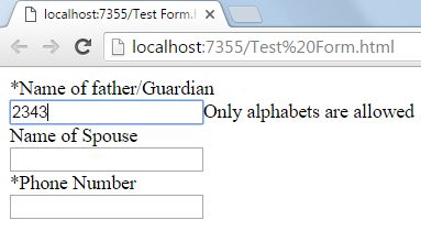 Here you can see that I had applied different kind of validation on three controls: required, number only, alphbets only.