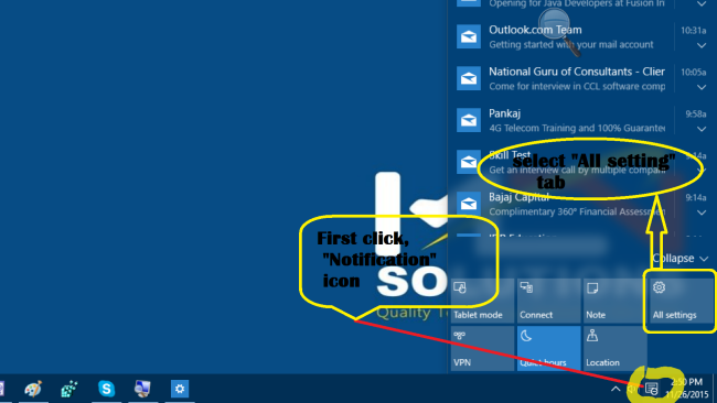 Click on the "Notification" icon to open the "Notification" pop-up window and select the "All settings" app tab as in the following screenshot.