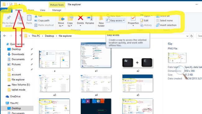 Microsoft added a new "File Explorer" to overcome the problem to use all file operations in the old "File Explorer" window. It means all the file operations of the "Windows 7" file explorer are visible in the new file explorer window. So Microsoft added the new look and feel explorer called Windows 10 "File Explorer" with advanced functionality that plays an important role in a user-friendly environment. Follows some steps to understand the new functionality Windows 10 "File Explorer".